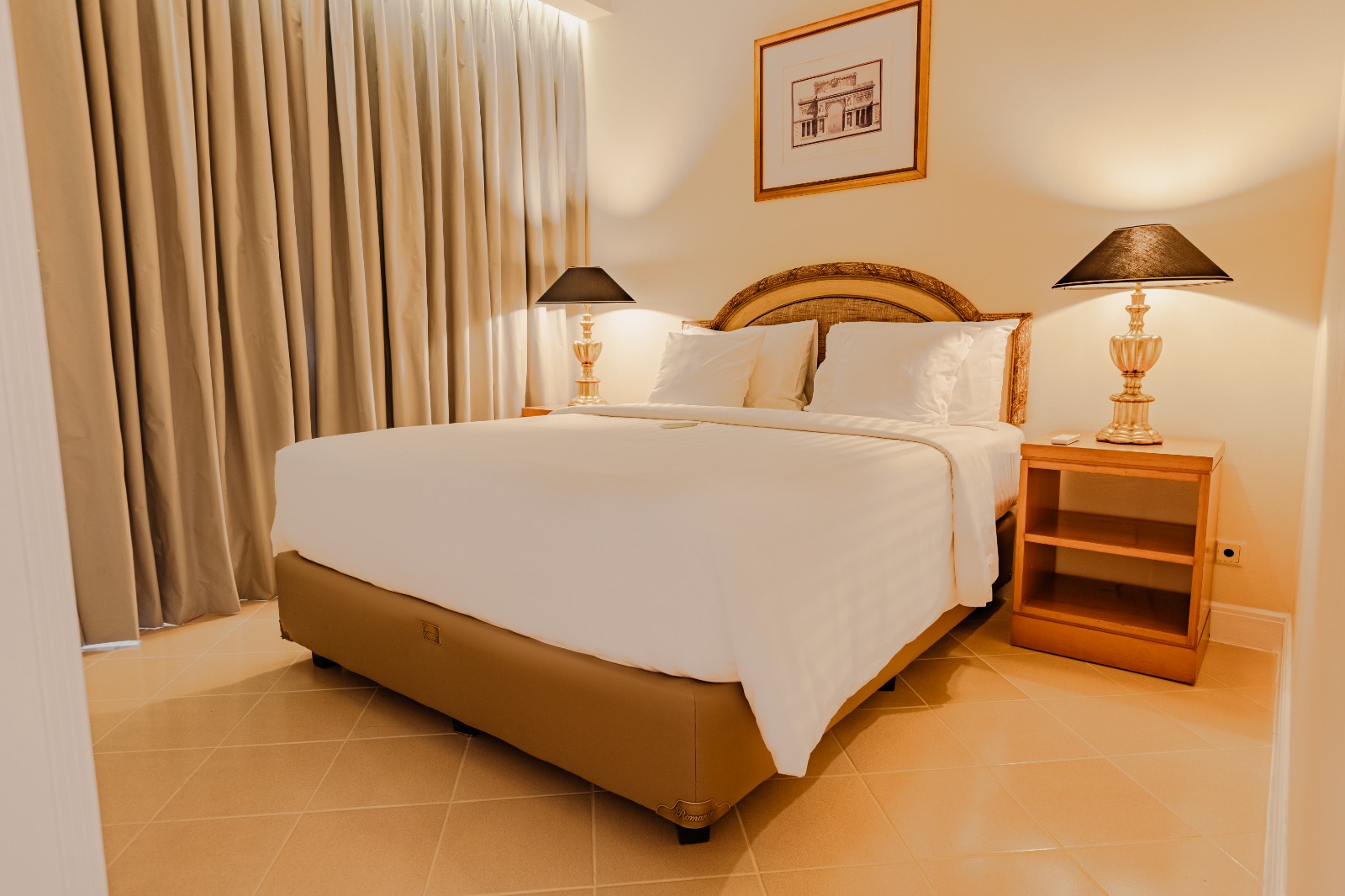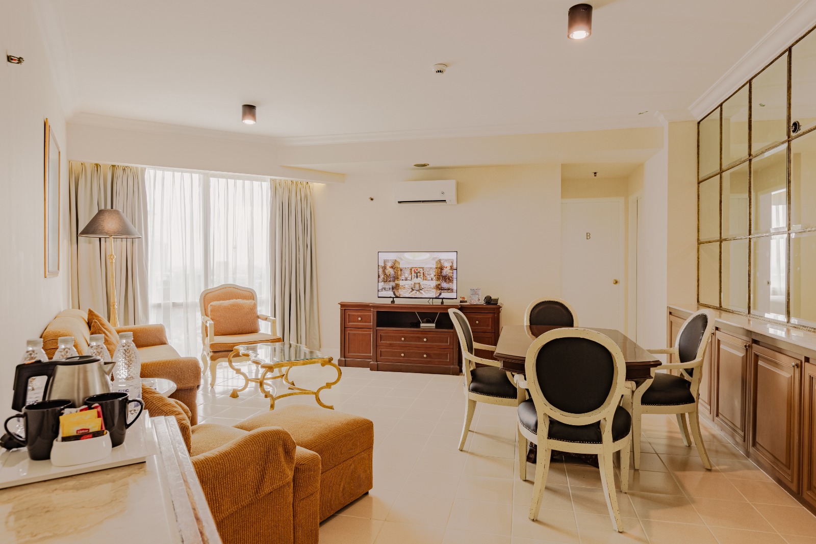 Book Now For Rp. 2500000Experience the living in art of our 118 m2 three bedroom which is fully furnished with classic contemporary comforts. Each bedroom comprises a Queen-sized bed (160 cm x 200 cm), which can be made up as a twin bed for a group long-term stay.