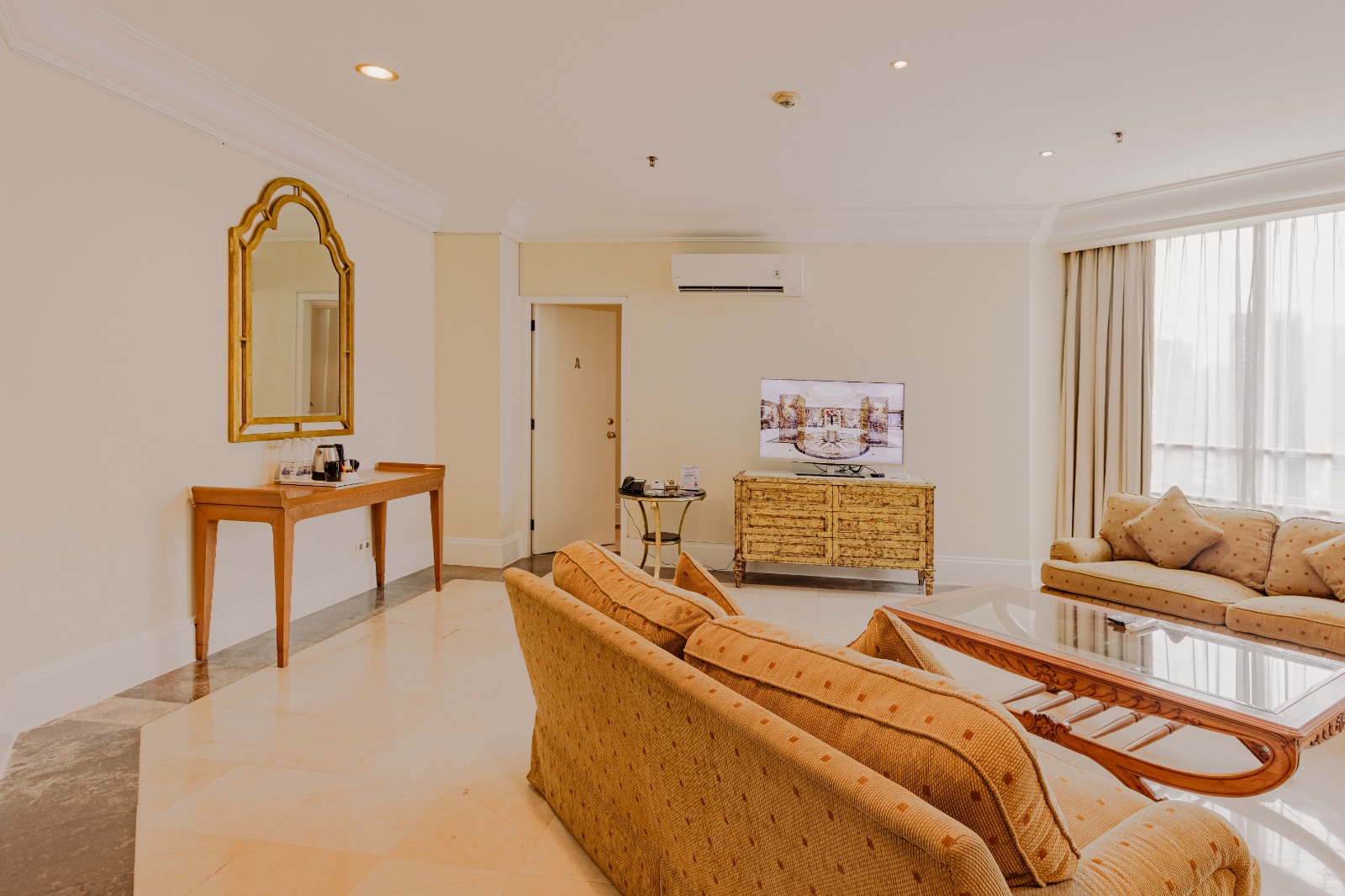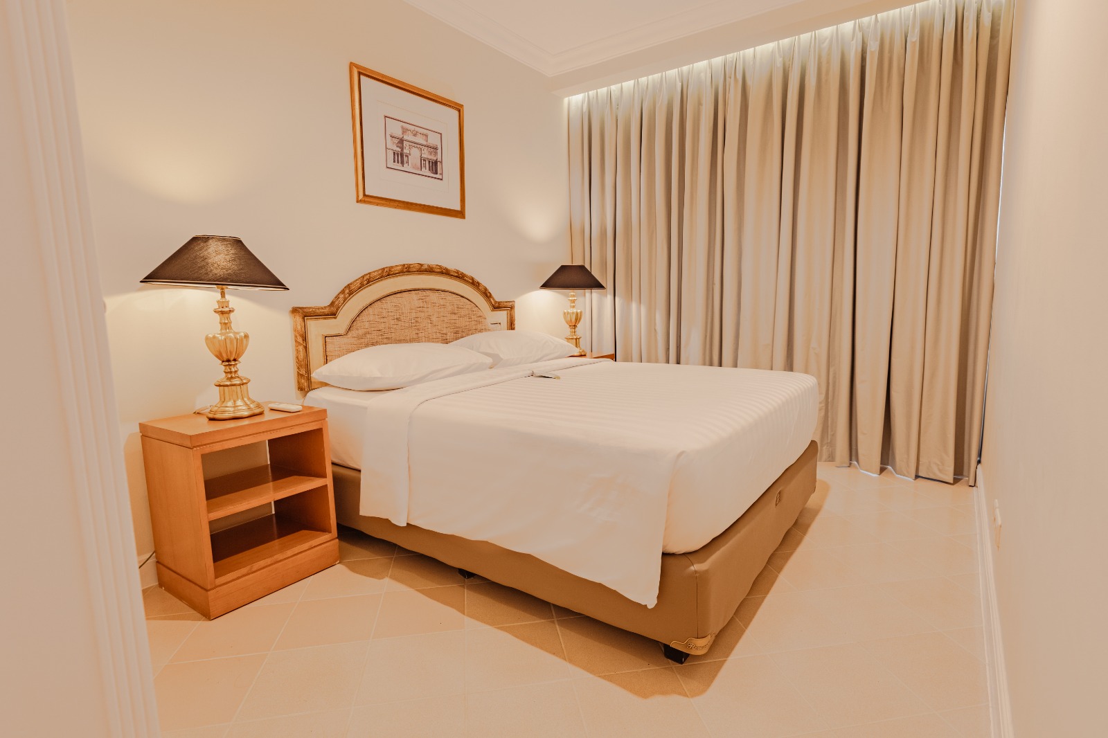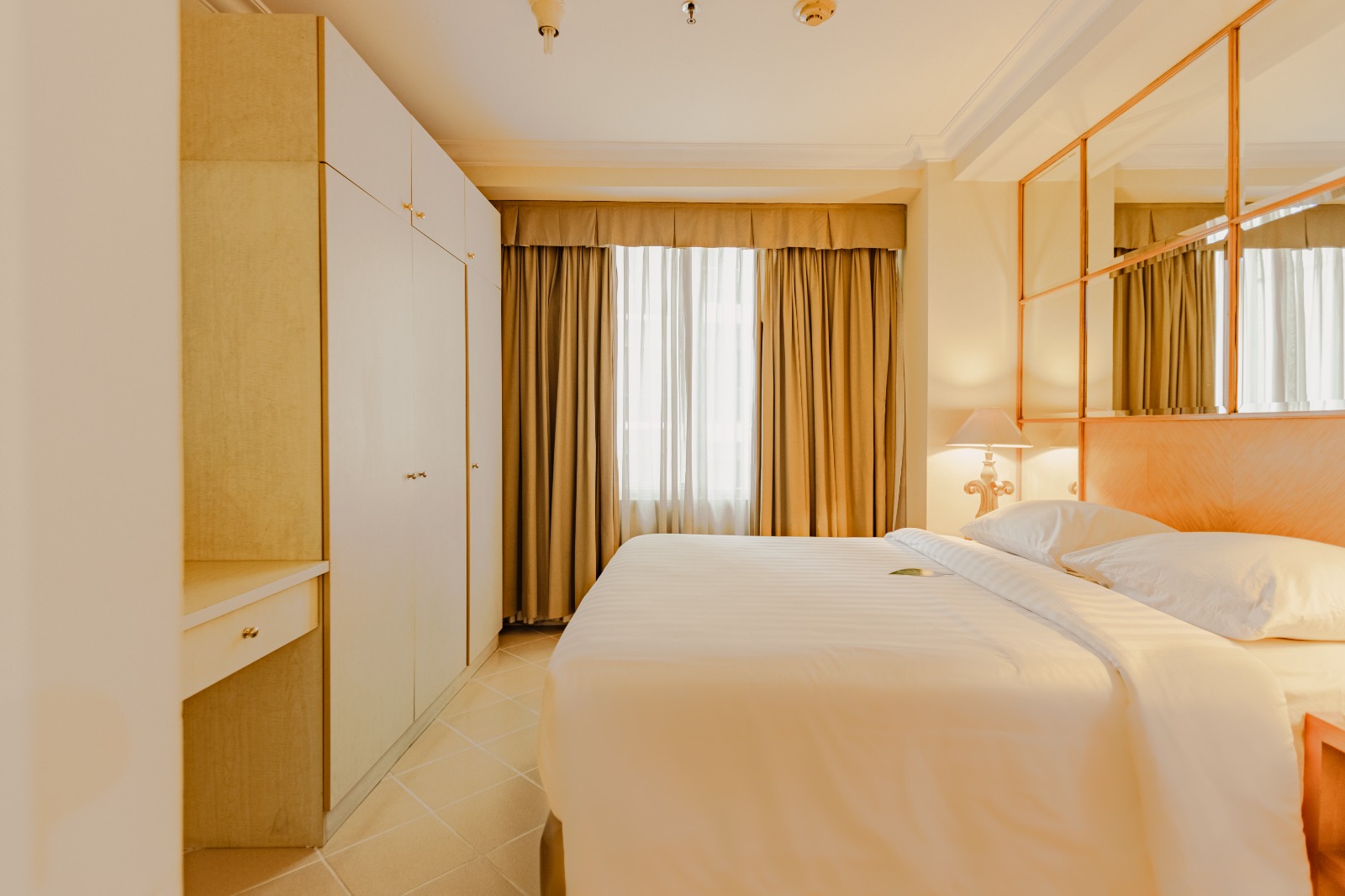 Book Now For Rp. 4650000A Presidential room at Batavia Apart Hotel places all of our best features by providing breathtaking views of Central Jakarta with 200 m2. The Presidential has 4 Bedrooms. The master bedroom is luxurious but homely, 2 Bedside Tables and a bathroom. This room is equipped with a kitchen and all the utilities and household appliances.