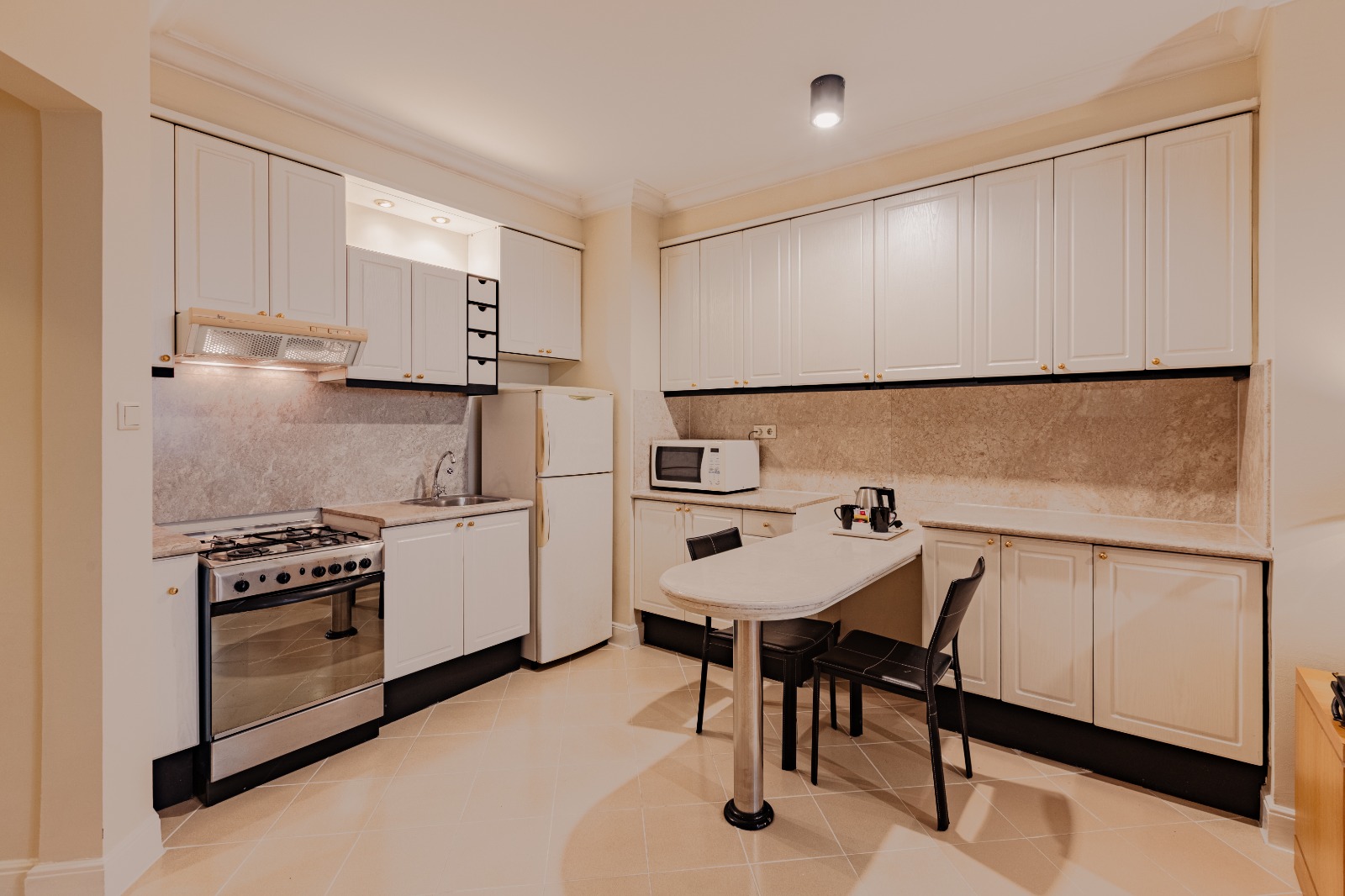 Comprises of a Queen size (160 cm x 200 cm), 2 Bedside Tables and vary in size 33 m2. 1 Bedroom Superior is equipped with Kitchen, a bathroom with a bath. A complimentary 2 Bottles Mineral Water, Coffee and Tea are provided on arrival.